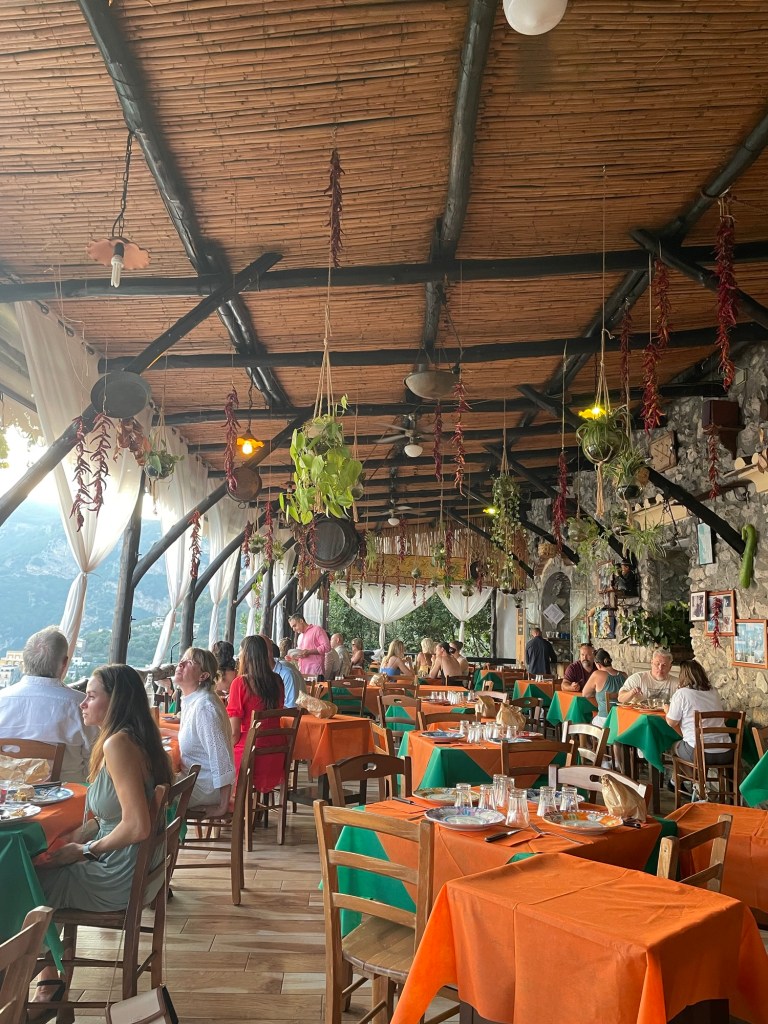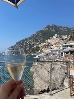 We had our own private section built into the cliff, which felt like the most romantic possible way to start the trip. With cabana seating, you also get a table overlooking the iconic Positano view — the one you see in all the photos.